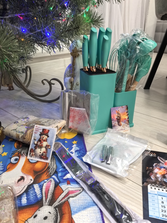 Наша снегурочка учла даже новое семейное увлечение - изготовление из дерева нужных вещей человечеству и подарила нам специальные ножи и перчатки🙏 Обязательно найдем им применение.