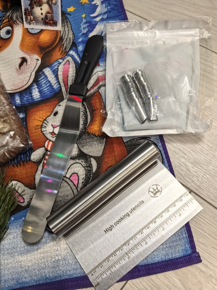 Здесь было множество всего для моего "сладкого" увлечения - шпатель, лопатка, насадки на кондитерские мешки (новогоднему торту однозначно быть!) в общем, все то, что так не обходимо в кондитерке.