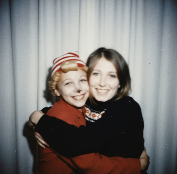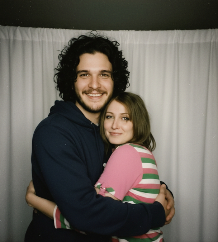 Сделай так, чтобы фото двух людей выглядело как настоящий Polaroid-снимок. Атмосфера должна быть спонтанной и живой, будто кадр случайно поймали без позирования и реквизита.