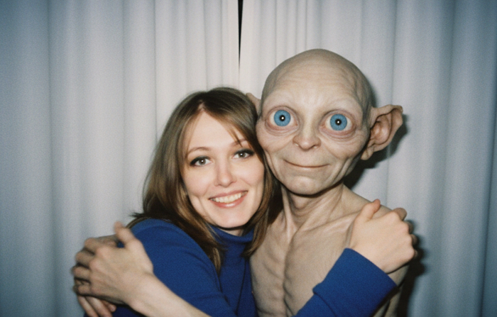 Добавь лёгкое размытие от движения и мягкий свет вспышки, равномерно рассеивающийся в тёмном пространстве. Лица не искажай – они должны сохраниться такими же, как на присланном фото. Замени фон на простую белую занавеску, создавая ощущение домашней непринуждённости.