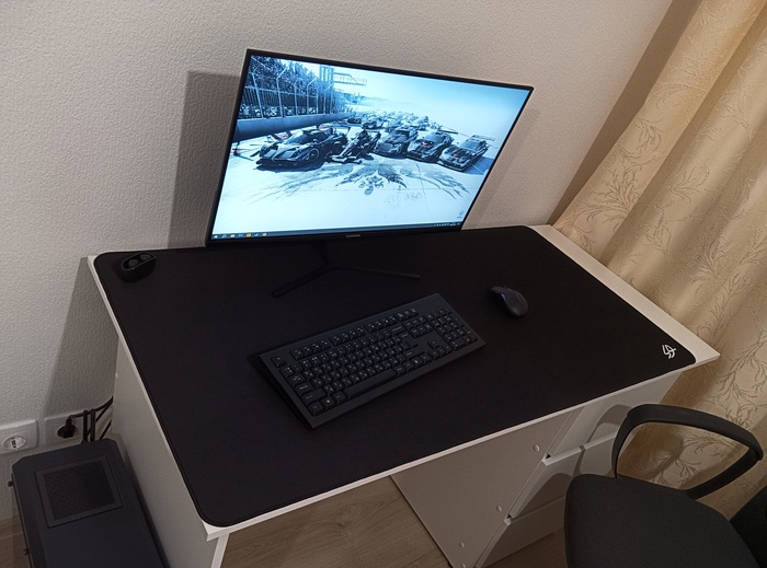 Потом прикупил коврик, честно говоря опасался, что к нему будет вечно все приставать, но как то обошлось, лежит чистый, ни разу не стирал. Все девайсы беспроводные, так уж привык. Сижу сейчас в такой вот обстановке, пишу обзоры на игры, в будущем, также для обзоров планирую прикупить X-box 360 или Playstation 3, можно поставить их на правой части стола хоть обе сразу, места хватит.