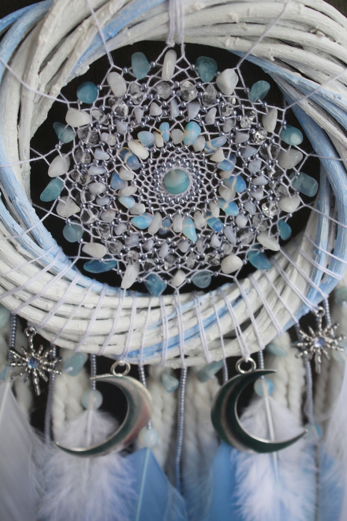 В составе — аквамарин, лунный камень, горный хрусталь, сапфирин и опалитовое стекло