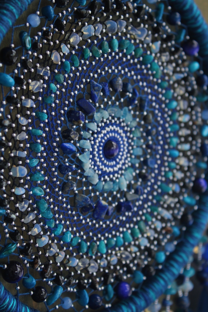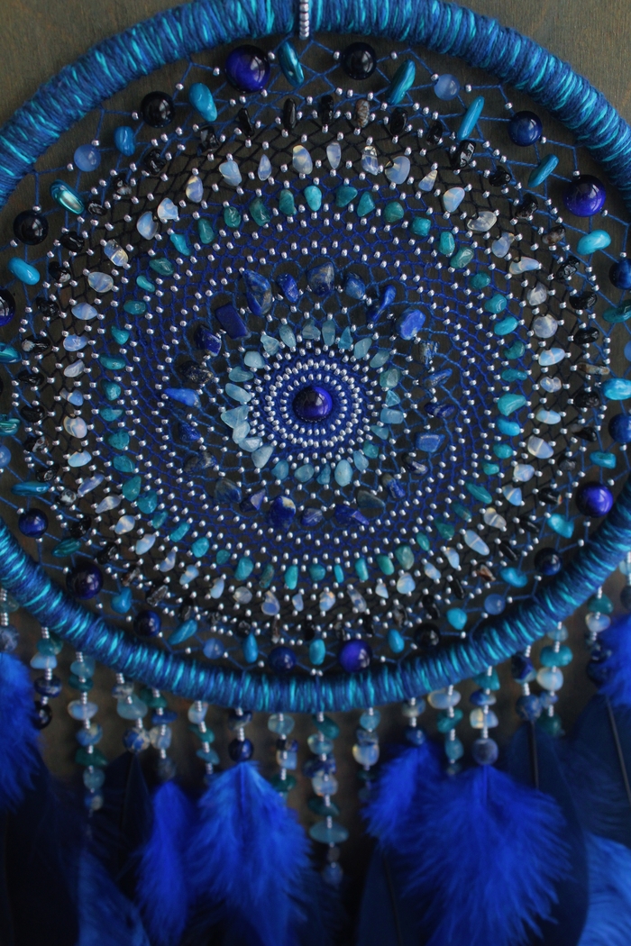 В составе — тигровый глаз, чёрный агат, опалитовое стекло, кошачий глаз, апатит, лазурит, аквамарин и варисцит