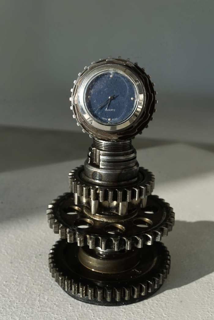 У меня уже был опыт создания предметов интерьера из автомобильных запчастей, на этот раз часы.