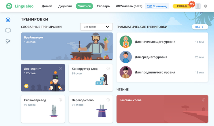 Прокачать уровень владения английским языком можно с помощью инструментов платформы.