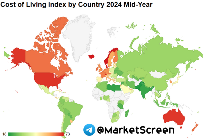 Тут подоспел индекс стоимости жизни от Numbeo. Швейцария ожидаемо возглавляет список самых дорогих стран для проживания в 2024 году.