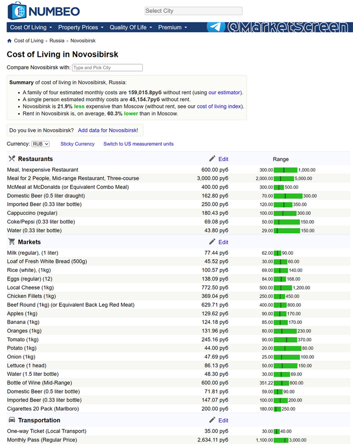 Кстати, камрады, этот самый Numbeo - весьма интересный сервис. Там не только страновой индекс стоимости жизни, но и по городам. Более того, он цены на различные товары и услуги в городах дает.