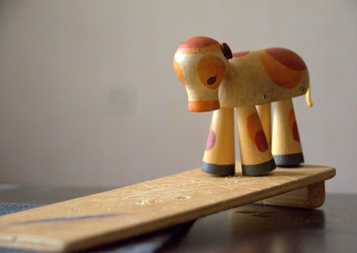 На самом деле, тут всё просто. В 30-е годы прошлого века, когда было сочинено стихотворение, была очень популярна игрушка, которая так и называлась: «Качающийся бычок». Нехитрое устройство позволяло деревянной игрушке, переваливаясь с боку на бок, спускаться по наклонной дощечке.
