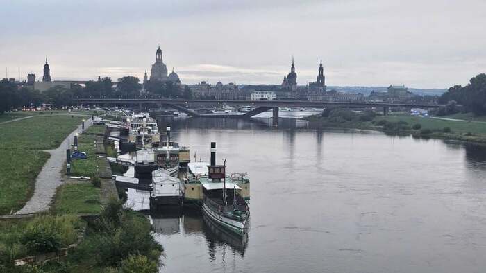 Около 3 часов ночи обрушилась половина моста Каролы в Дрездене, на которой расположены пешеходная дорожка и трамвайные пути.