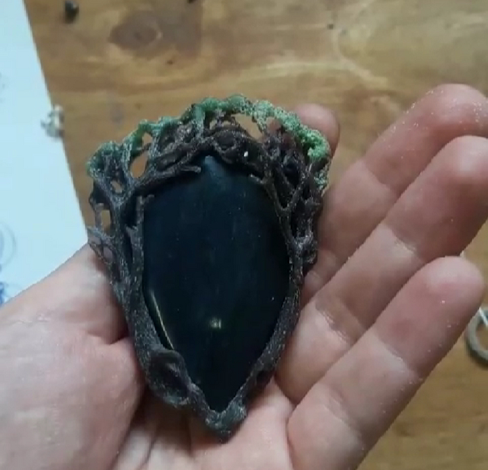 Пока оправа отдельно, камни отдельно, но уже можно дорисовать в воображении готовый кулон