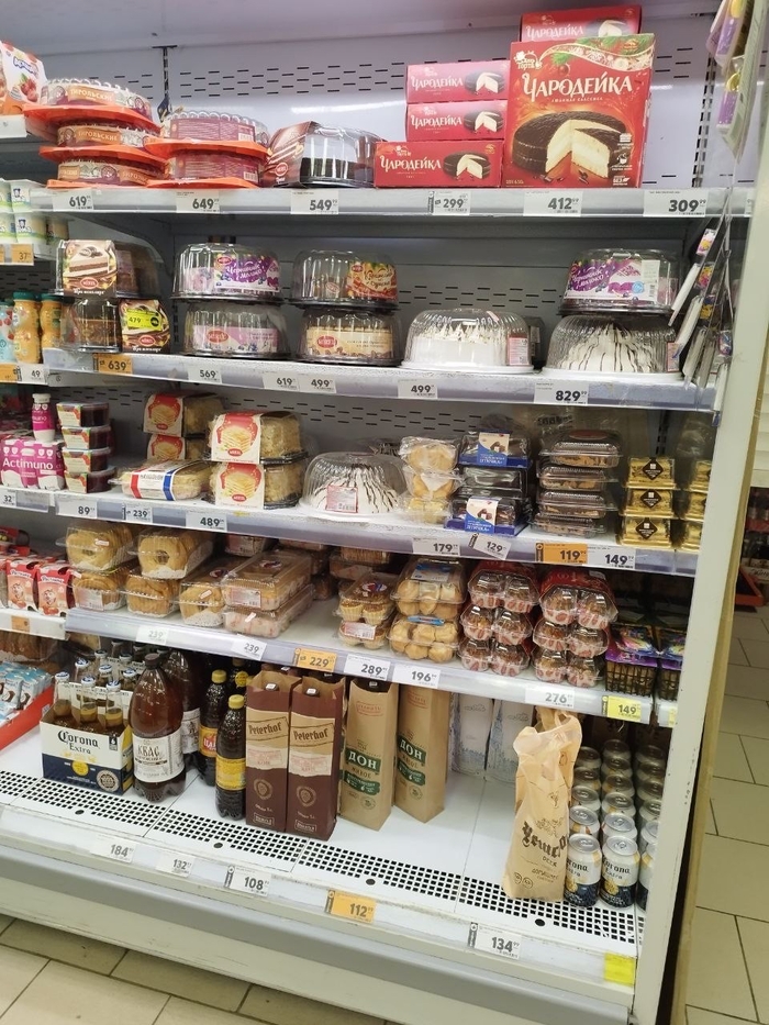 По данному отделу бросается в глаза отклеивающийся ценникодержатель на полке с тортами и пирожными. 🎂🍰🧁