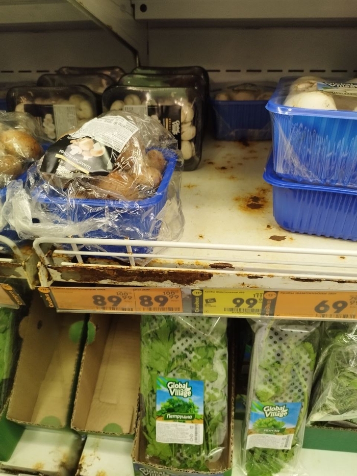 Ржавые полки просто притягивают внимание покупателя и напрочь отбивают желание что-нибудь покупать из этого холодильника🙅♂🙅♂🙅♂