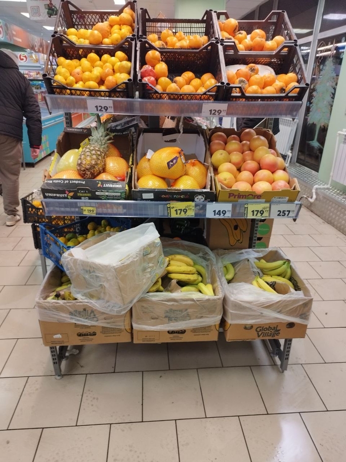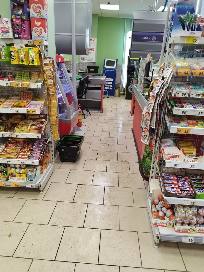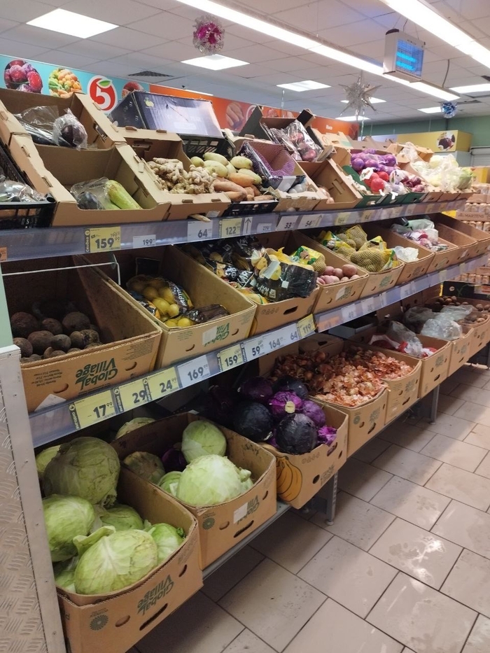 Произвёл впечатление запущенного магазина, которому явно требуется ремонт и усиленный контроль за качеством продаваемой продукции(особенно это относится к отделу овощи/фрукты), а также более тщательный контроль за чистой магазина❗️