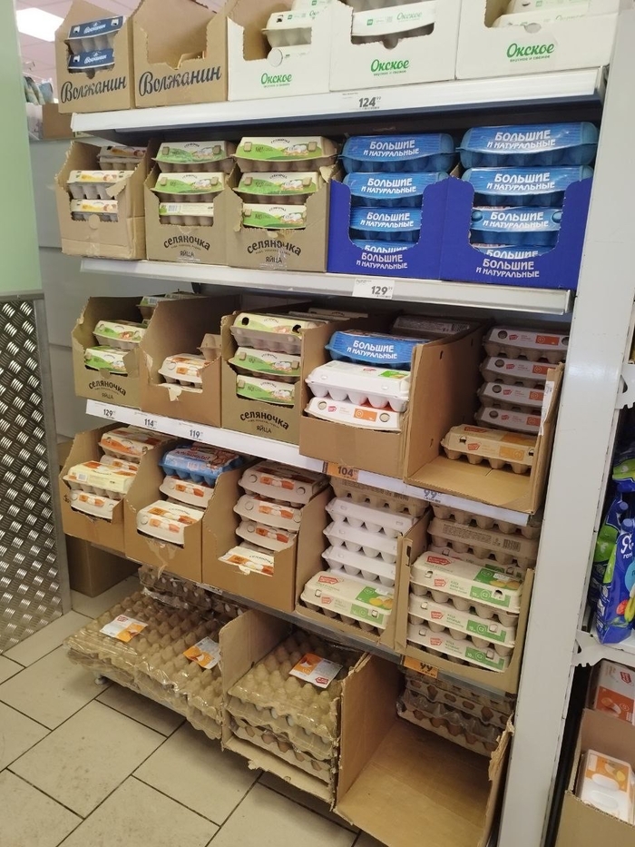 Рядом с отделом охлаждëнного мяса расположился стеллаж с яйцом🥚🍳
