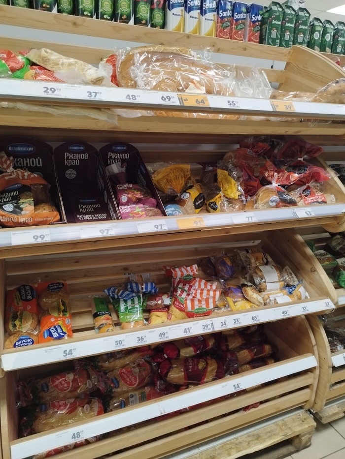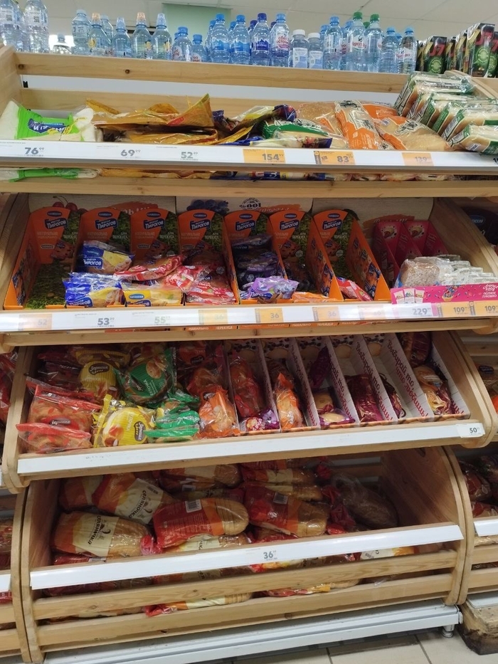 Бросается в глаза немного пустот на полках, есть из чего выбрать. Ценники присутствуют, но не везде ⚠️