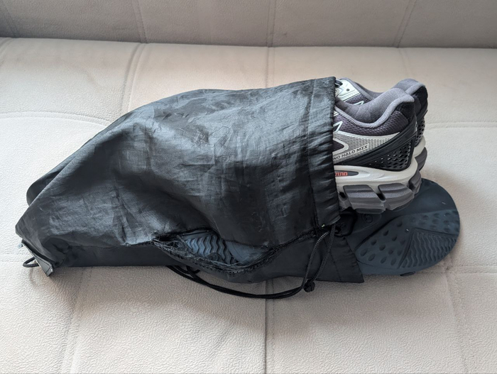 Раньше я ходил в зал с сумкой, где была отдельная секция для обуви, но мне не хватало в ней места, если я брал с собой шлепанцы для душа. Теперь сумку сменил на большой рюкзак, чтобы не тянуло в сторону, пришлось купить мешок школьный для обуви, но он быстро разошелся от вмещаемого объема. Теперь интересно, что носят люди.