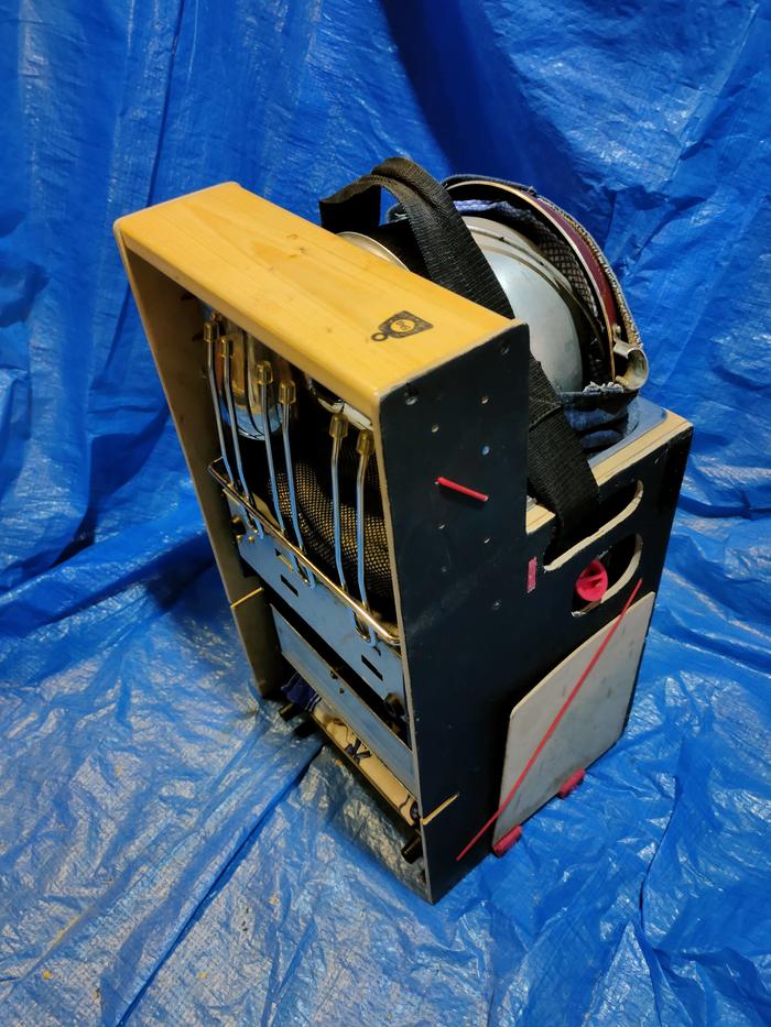 И вся вот эта красота чакбокса версии 1.0 - она как бы не про мобильность. Когда к чакбоксу снизу пристёгнут аккумулятор и канистра, сверху болтается на штанге светильник, на многочисленных небольших полочках стоит разная посуда - даже на колёсиках перетаскивать его с места на место - так себе затея.