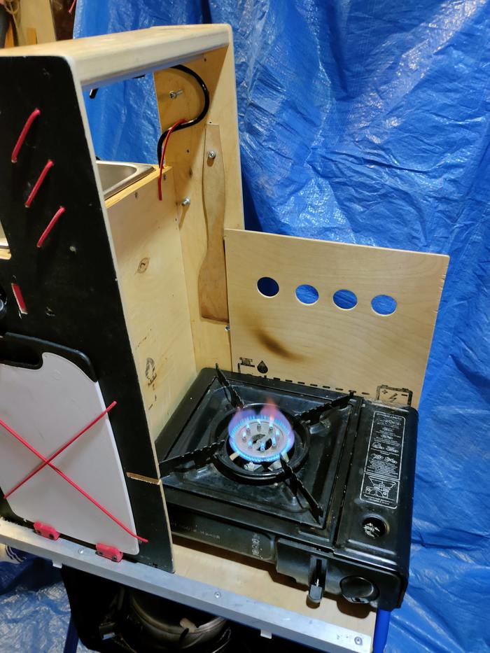Это, конечно же, было полнейшим бредом - для моих условий эксплуатации электричество и вода обязательно должны размещаться сразу внутри кухни, и быть готовыми к использованию сразу после её извлечения из багажника. Это потом можно долить воду или подставить другую канистру, подключить дополнительный аккумулятор - но изначально вода и свет не должны требовать длительной коммутации.