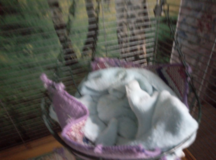 Клетка на троих просторная, очень любят лазить по прутьям, но особенно ночью их грызть. Нет, кормим их хорошо, они их грызут просто из вредности.