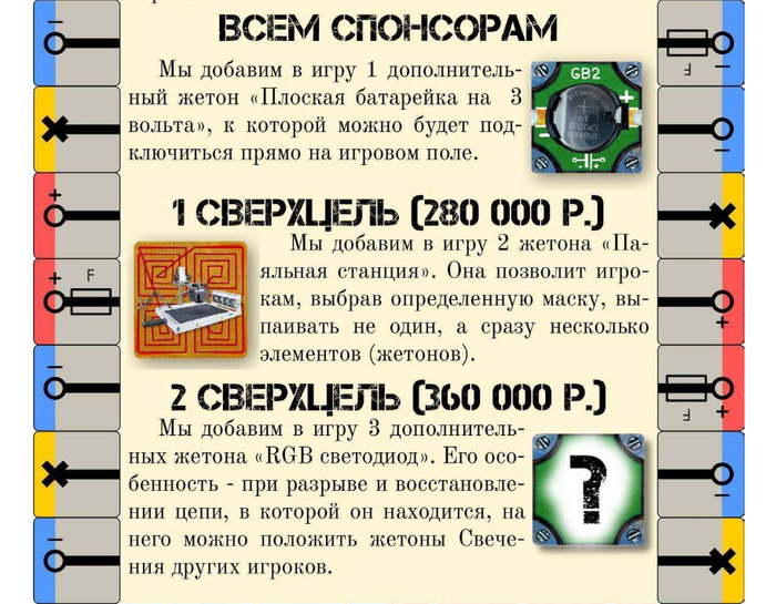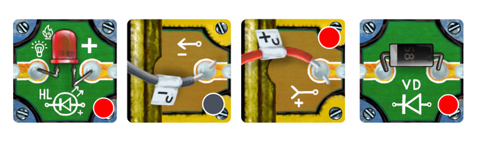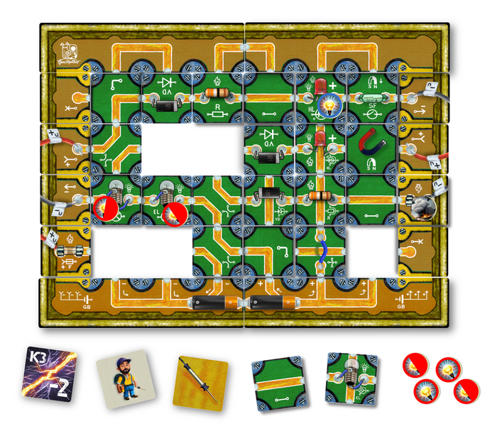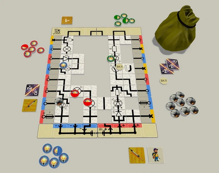 Также в игре есть сторона «Принципиальная схема» и она идеально подходит для обучения, а также для создания задачек по физике. Мы планируем позднее выпустить сборник таких задач-головоломок. Кому-то эта сторона жетонов покажется сложнее, а для кого-то такая «абстракция» будет интересней.