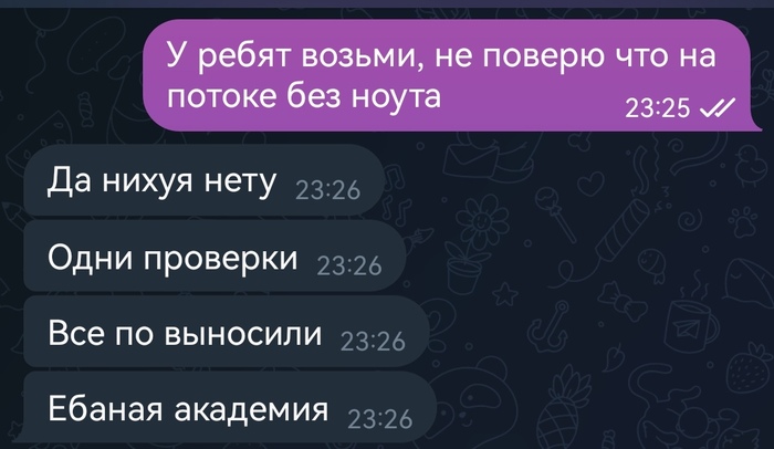 Говорю так и так редактируй товарищ, я свою учебу давно закончил, и почти все лабы, презентации и прочее делали на ноутбуке, но видать там у них средние века, на берёсте пишут 🤣. Со словами что он там в рот всех , что ему это вообще нафиг не надо, что ненадо сравнивать с гражданским вузом их великую академию, что наряды это наше все, а остальная информация в жизни мало пригодится. Вот я тут и задумался как я отучился и почти всегда в своё работе применяю свои полученные знания, и как это человек хочет выпуститься и как работать на технической специальности, ну не сводится же вся служба в покраску травы в зеленый цвет и маршировке по кругу, или все делать на и так сойдёт?
