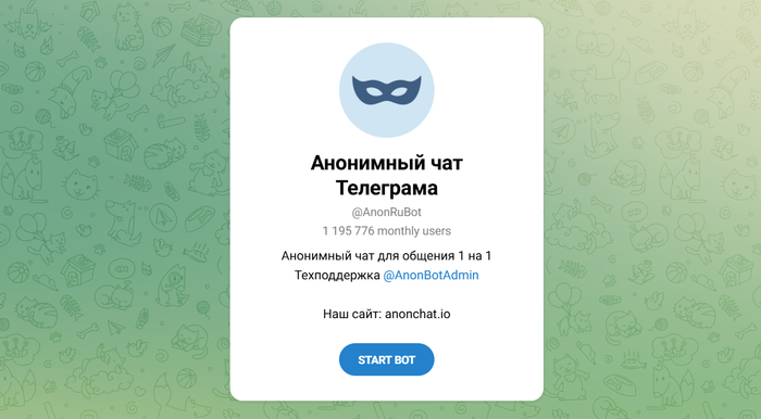 Этот чат-бот позволяет общаться полностью анонимно: нет необходимости раскрывать своё имя или фото — просто сидишь, переписываешься и решаешь, хочешь ли дальше развивать диалог.