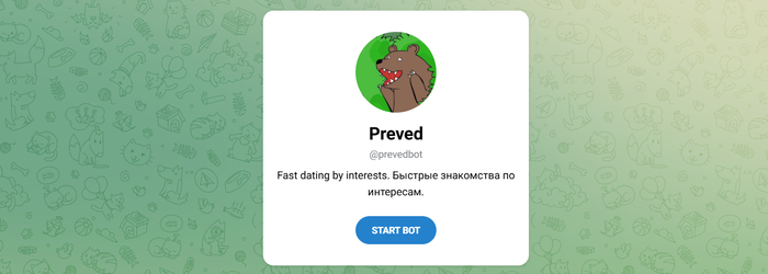 Preved — минималистичный бот, где собеседники выбираются случайно, и ты можешь просто начать чат, не думая о фильтрах или анкетах. Иногда именно так рождаются самые неожиданные разговоры.