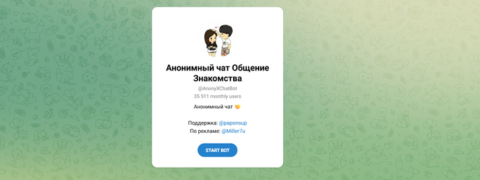 Если ты хочешь просто пофлиртовать или познакомиться с кем-то новым, но не готов к громоздкой анкете — этот бот может стать отличным вариантом.