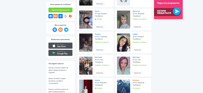 LovePlanet — один из старейших сайтов для знакомств в России, и в Челябинске он весьма популярен: здесь можно найти людей, настроенных и на серьёзные отношения, и просто на общение.