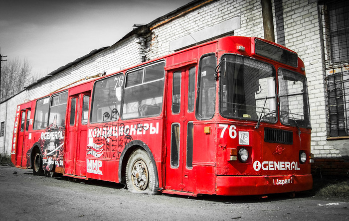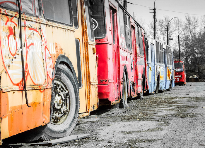 Ну как возможность, отчаявшись ходить по пермяковскому мосту и видеть сверху умирающих машин, мы решили пробраться на территорию самого депо. Обследовав обстановку, разведав ситуацию и сделав каменные лица, мы просто прошли через один из входов на стоянку предприятия, прикинувшись своими. Никто даже не спросил с нас пропуск и не предпринял попытки остановить двух парней ровно до тех пор, пока изрядно погуляв по территории более получаса и сделав фотографии, мы не стали проверять троллейбусы на закрытие. Именно тогда к нам подошел охранник территории с собакой и спросил: «Вы кто такие и что тут делаете?» В итоге после 10 минутных переговоров и убедительных доводов нам разрешили остаться и обследовать территорию еще подольше.
