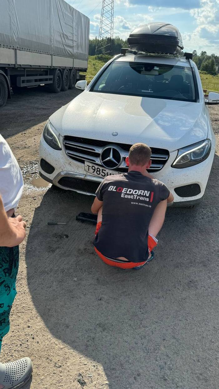 Внаглую подойдя к фурам, которым делать нечего (они в объезд не пойдут, а дорога закрыта), мы любезно попросили их нам помочь)))