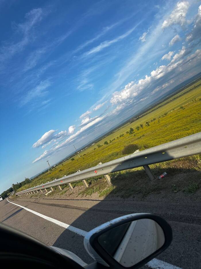 Поменялись и по пустынной дороге погнали дальше) впереди еще 5.5 часов)