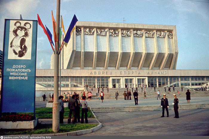 Сорткомплекс "Олимпийский", в том числе бассейн, 1980. Сооружение было самым крупным в Европе плоть до 2017 года, пока в Париже не открыли "Ла-Дефанс Арену". Вид от Олимпийского проспекта.