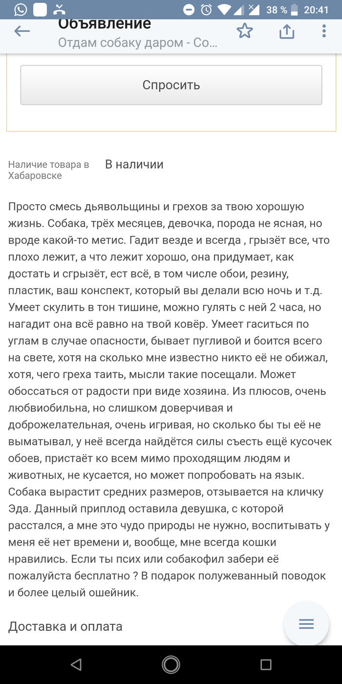 Привет,Пикабушники. Сижу я,значит,на небезызвестном информационном сайте,листаю объявления и на глаза мне попадается довольно необычное.