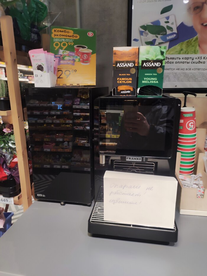 Пятёрочка. Объявление возле кофемашины: