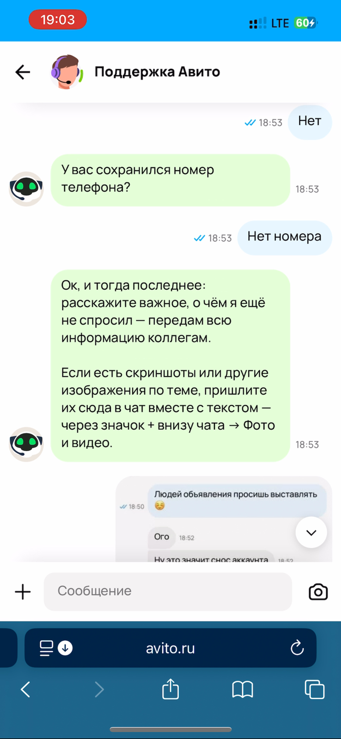 Вчера я продавал товар на Авито и мне написал человек,предлагавший перейти в телеграмм и общаться там,я понимаю для чего такие люди зовут в мессенджеры,для того,чтобы предложить выставление объявления за деньги,но я отказался переходить в остальные мессенджеры,на что пользователь угрожал мне сносом аккаунта,я написал в поддержку,которая гарантировала мне,что все будет хорошо,в итоге аккаунт был заблокирован через несколько часов,все правила мной были соблюдены,я специально прочитал все правила и ничего не нарушил,более того у меня есть активные заказы,Авито самая худшая платформа,номер привязанный к аккаунту +7 (993) 273-29-79