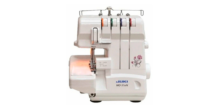 На восьмой строчке рейтинга стоит еще один оверлок из ценового сегмента выше среднего – Juki MO-51eN, который подойдет для профессиональной работы с материалами любой фактурной сложности и плотности. Как и предыдущая модель, он предназначен для использования трех и четырех нитей и предлагает 8 вариантов швейных операций. В их число входят плоский шов, ролевый, узкие и широкие. Длину стежка можно устанавливать в диапазоне от 1 до 4 мм, а ширину шва – от 2,5 до 6 мм.