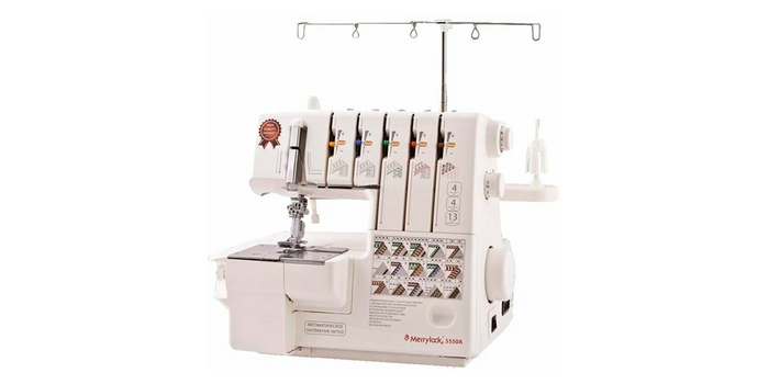 Итак, на первой строчке рейтинга стоит премиальный коверлок Merrylock 5550A с возможностью шитья двумя, тремя, четырьмя и пятью нитями. Как и предыдущая модель, он является симбиозом оверлока и плоскошовной машины, что существенно расширяет творческие возможности. Он разработан по стандартам промышленных изделий, что позволило обеспечить безупречную надежность и высокие рабочие характеристики для бытового оверлока.