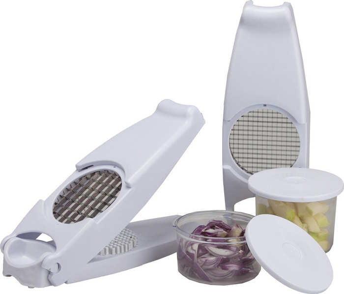 Этот девайс достался мне случайно с комментарием «забирай, всё равно не пользуюсь». Ну и славно, а у меня он прижился и используется вполне регулярно. Он пригождается в момент, когда требуется нарезать кубиками большое количество ингредиентов — в 99% случаев это окрошка, винегрет и салат оливье. Все, кто хоть раз нарезал оливье вручную, с содроганием вспоминают о липнущей к ножу варёной картошке. Здесь без ножа тоже не обойтись, но всё же процесс проходит намного менее болезненно.