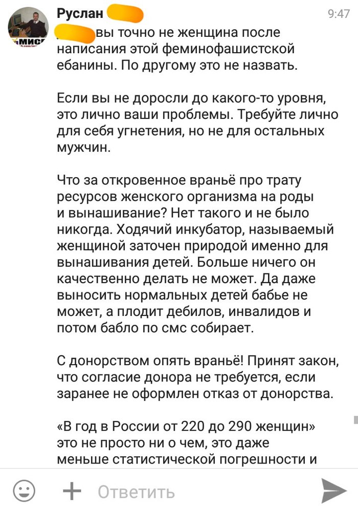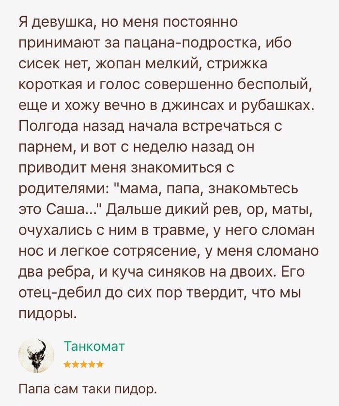 - Да, даже если она кого-то бьет, надо терпеть! Он же мужик!