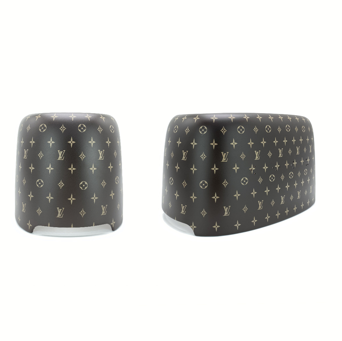 Брендировать можно ВСЁ. Если зимой заказывали ёлочные игрушки, то летом в BLACKCUSTOMS заказывали огнетушители, канистры, бейсбольные биты, респираторы и даже унитаз! Приходили заказы на тостеры, на целые наборы инструментов и автомобильные детали. Самым популярным дизайном признан Louis Vuitton. А вам случайно не встречались автомеханики с нашими инструментами?