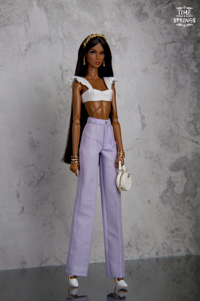 💜Кроп-бюстье из батиста с "крылышками" на бретелях и лавандовые брюки прямого кроя со "стрелками"💜
