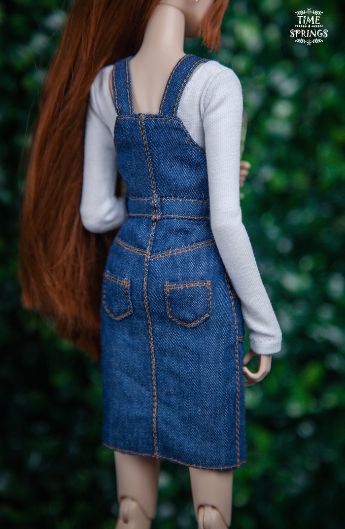 Боди без застёжки, а сарафан на липучке спереди, на подкладе. Четыре накладных кармана, все функциональны.