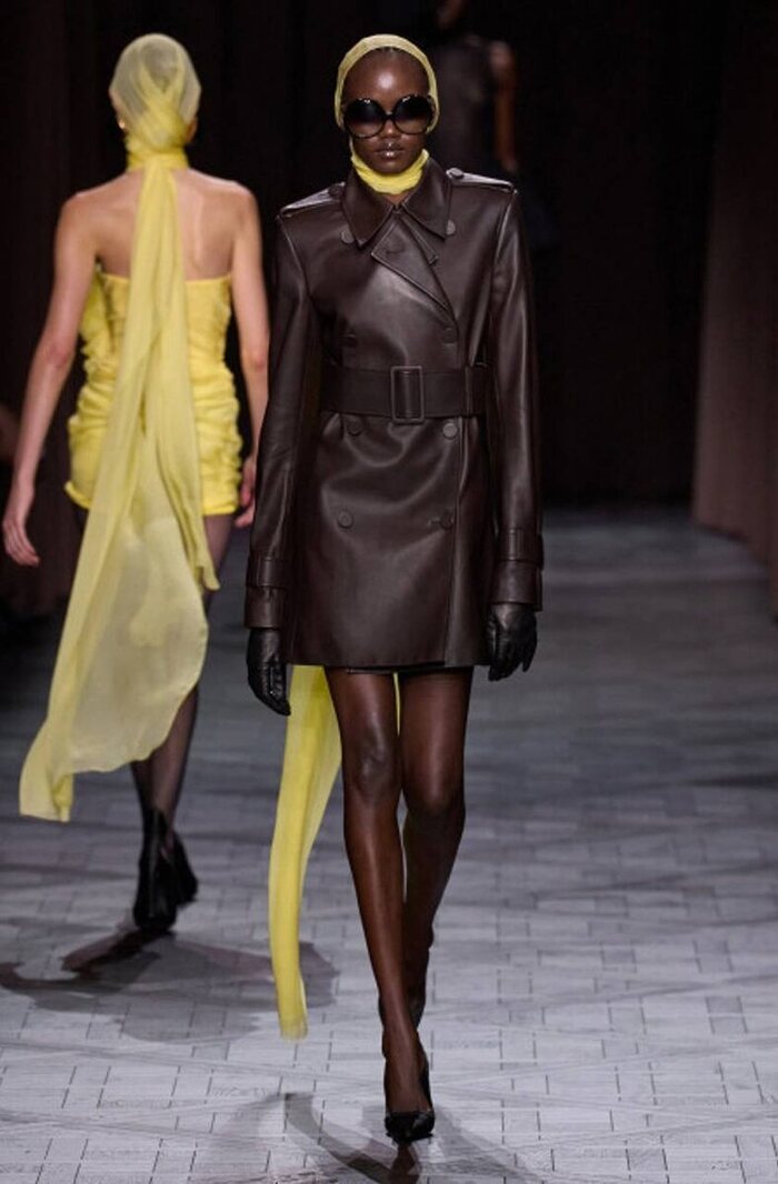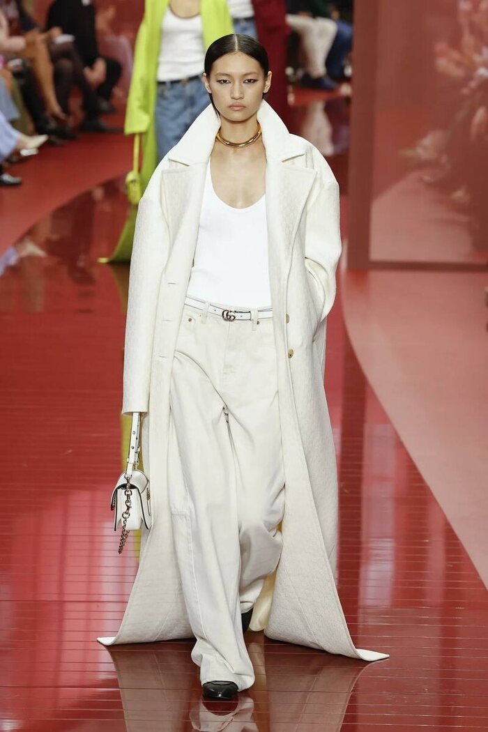 Длинные пальто в пол, как правило, имеют классический пиджачный воротник. Строгость линий, маскулиность и небольшой оверсайз. В большинстве коллекций такие модели имели пояс, что добавляло более женственный акцент на талии. (Tommy Hilfiger, Gucci)