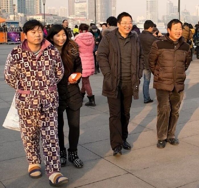 Одна из древних китайских традиций выйти на вечерний променад в зимней пижаме. Они теплые как верхняя одежда, но мягкие