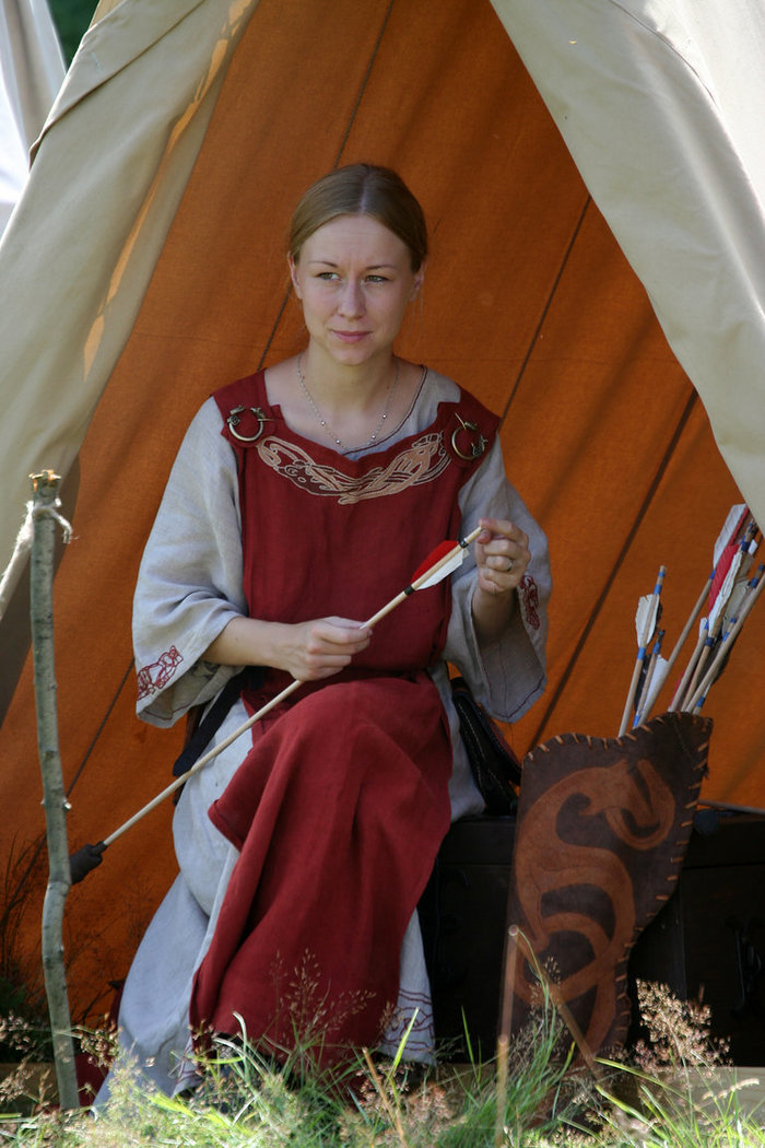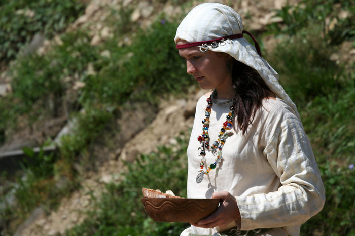 С Востока происходят и шелковые ткани, они в новгородских раскопках представлены немногими кусками. Свои новгородские льняные ткани тоже при раскопках попадаются довольно редко: лен сравнительно плохо сохраняется в земле, но его было много. Обильные упоминания новгородских писцовых книг конца XV в. о возделывании льна не позволяют сомневаться в обильном применении льняных тканей, шедших, конечно, на сорочки и, вероятно, также на летние одежды.