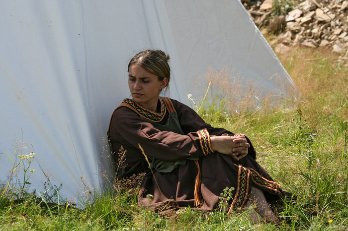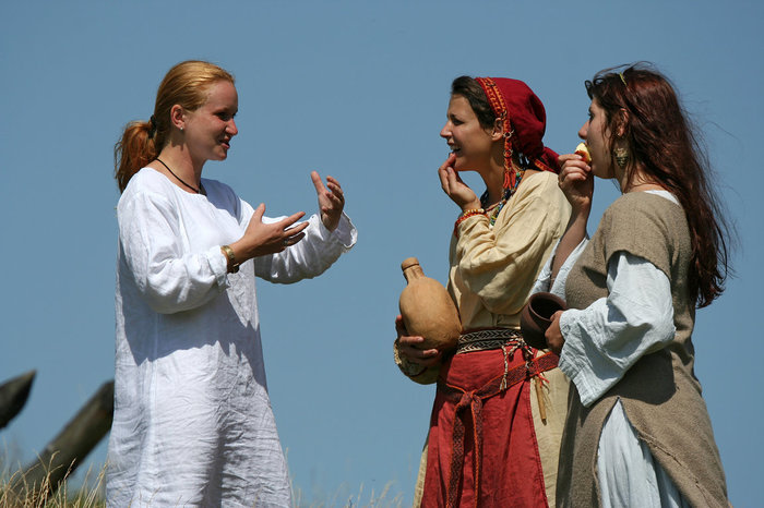 Обувь в мужских и женских погребениях одинаково встречается (иногда кожаная), но не приходится сомневаться, что и в XIII-XV вв. основной деревенской обувью были лыковые лапти. Одежды крестьяне ткали обычно из грубой шерсти.