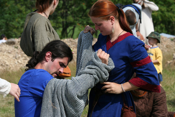 От мужских одежд до нас доходят пояса, от женских - украшения. Основной одеждой мужчин оставалась короткая рубаха, главная форма которой, косоворотка, выработана еще в предыдущую эпоху. Подпоясывалась она высоко, значительно выше уровня таза. Короткая рубаха простонародья резко отличалась от долгополых одежд знати.