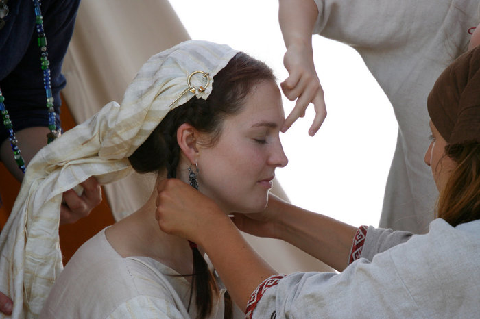 Эта странная мода существовала, по-видимому, только в Новгороде (и только в XV в.). Тот же Ланнуа говорил о Пскове: "Русские этого города имеют длинные волосы, распущенные по плечам, а женщины имеют диадему на макушке, как у святых".