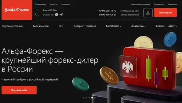 Альфа-Форекс — один из самых стабильных форекс брокеров с лицензией ЦБ РФ. Компания входит в группу Альфа-Банка, что гарантирует высокую степень надёжности, быструю обработку транзакций и поддержку на всех этапах торговли. Платформа брокера предлагает доступ к основным валютным парам, сырьевым активам (нефть, золото), а также глубокой рыночной аналитике и торговым сигналам.